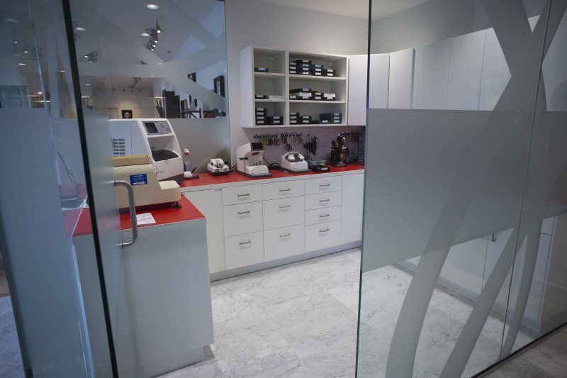 Custom Eyewear including: custom tints, clip on sunglasses, and rimless eyewear (drilled on site).